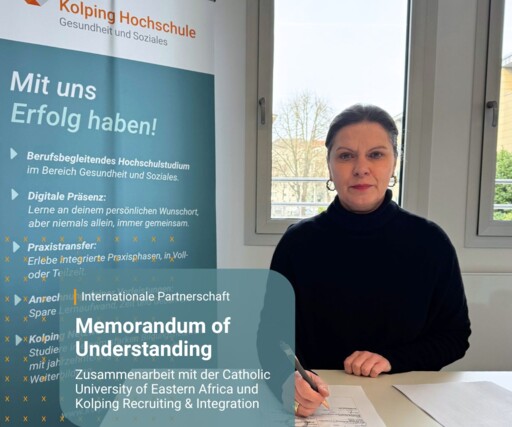 Wir haben gemeinsam mit der Catholic University of Eastern Africa und der Kolping Recruiting & Integration GmbH ein Memorandum of Understanding unterzeichnet. Ziel ist die gemeinsame Entwicklung eines dualen Programms im Bereich Soziale Arbeit, das internationale Standards erfüllt, digitale Lehrformate stärkt und qualifizierten Fachkräften aus Kenia den Weg in den deutschen Arbeitsmarkt ebnet.