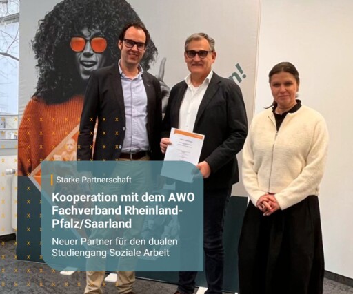 Mit dem AWO Fachverband Rheinland-Pfalz/Saarland gewinnen wir einen starken Partner für unseren dualen Studiengang Soziale Arbeit. Der Fachverband ist ein kompetenter Ansprechpartner für zahlreiche soziale Einrichtungen in der Region, unterstützt Träger im Arbeitsalltag und setzt sich engagiert für soziale Gerechtigkeit, faire Lebensbedingungen und gesellschaftlichen Zusammenhalt ein.